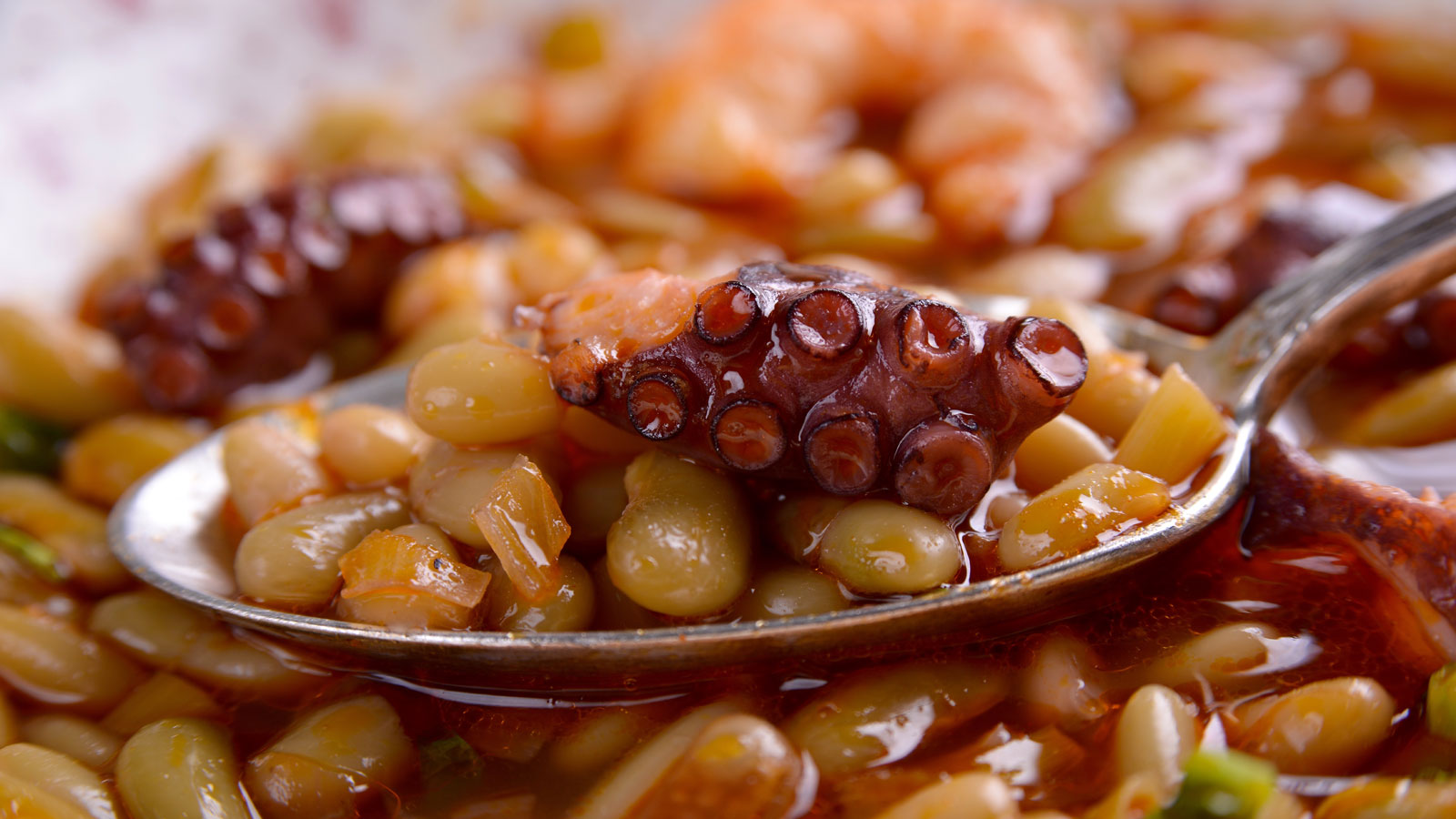 En el capítulo 4 del programa La abuela Lolita la cocinera Dolores Valcárcel nos ensaña a preparar una receta de Verdinas con pulpo y langostinos.