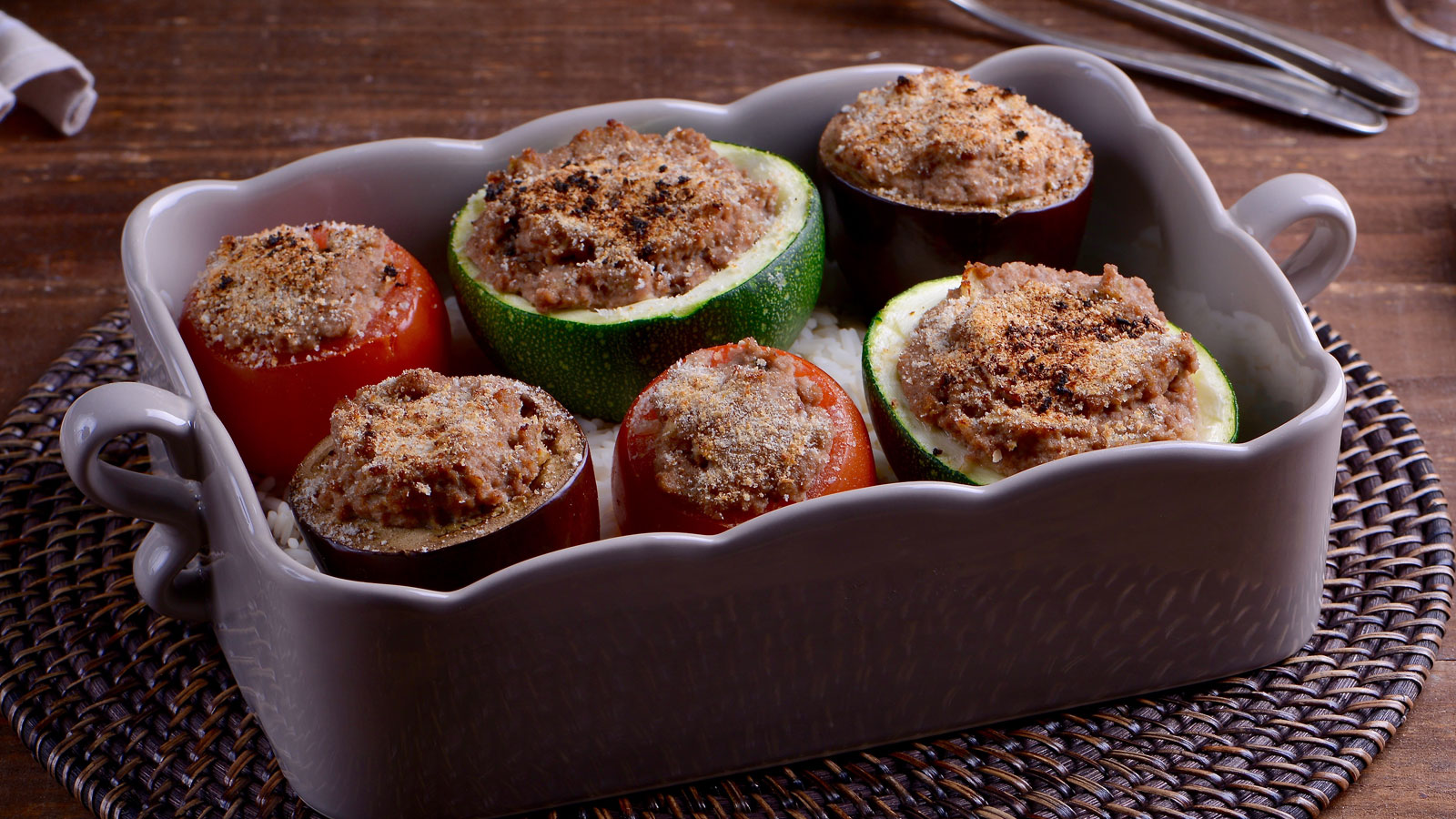 En el capítulo 27 del programa de televisión Cocina Francesa T2, nuestra cocinera Evelyne Ramelet prepara la receta de Verduritas rellenas de Niza (Petits Farcis Niçois). Este plato típico de la ciudad francesa de Niza se come como entrante, pero puede servir perfectamente como plato principal muy completo si cocinamos la cantidad correcta, puesto que contiene carne, verdura y arroz. Además, se puede acompañar de salsa de tomate fresco.