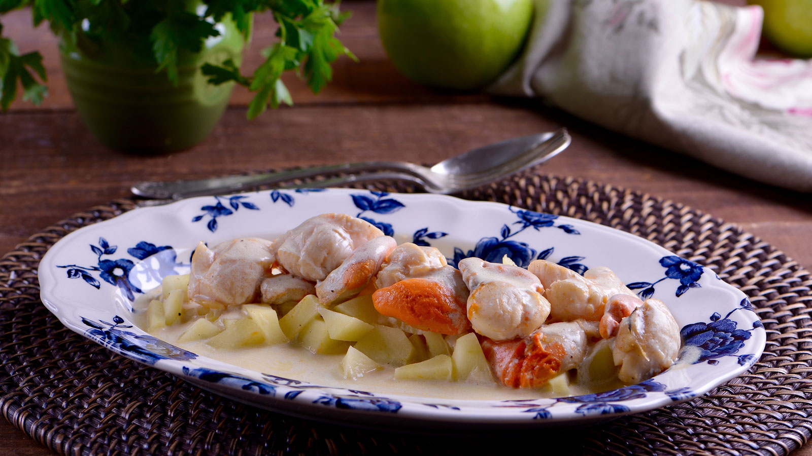 Vieiras con manzanas y sidra