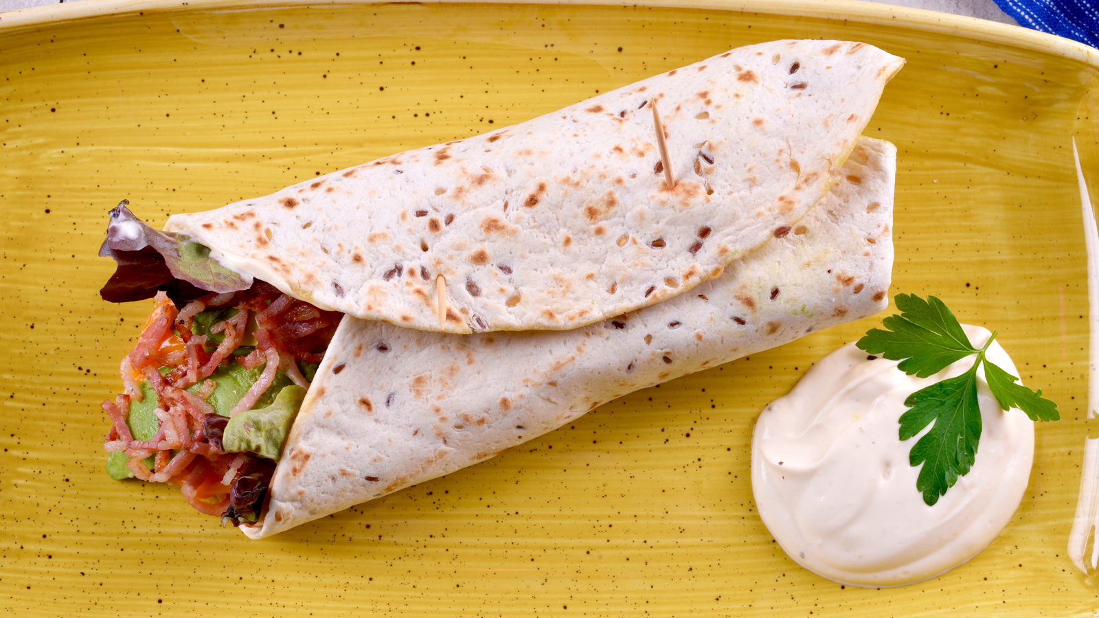 Servimos el wrap con un poco de la salsa de mahonesa y yogur.