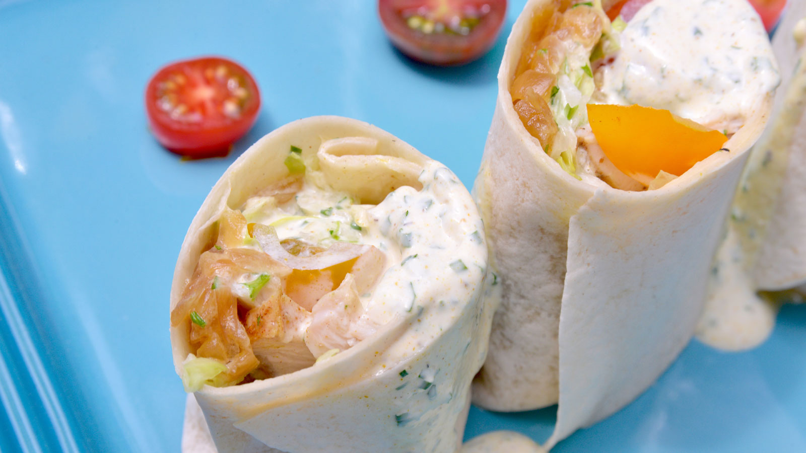 Wrap de pollo a la parrilla con salsa untuosa de yogurt especiada