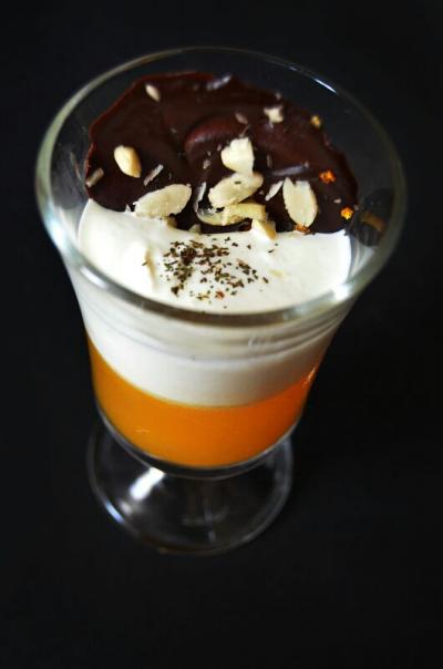 Yogur con gelatina de narajan y chocolate