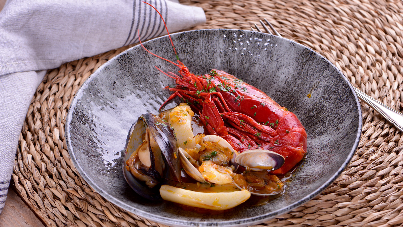 En el capítulo 66 del programa de televisión Sabor de Hogar T3, Juan Pozuelo prepara la receta de Zarzuela de marisco con tomate.