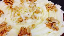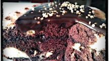Bizcocho de chocolate con almíbar de naranja y almendras crocanti