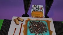 Panna cotta de parfait amour con crema de fruta de la pasion