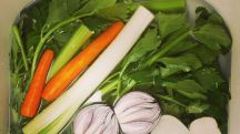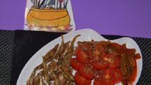 Pollo asado en mojo palmero acompañado con un salteado de verduras con mojo de cilantro
