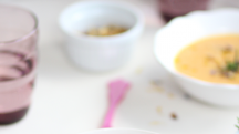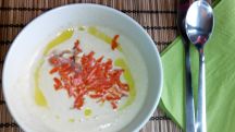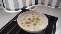 Albóndigas de pollo al vapor con salsa de cebolla y almendras
