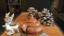Cupcakes de vainilla rellenos de turrón de chocolate y arroz inflado y cubiertos de crema de turrón