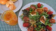 Ensalada de queso de cabra con vinagreta de mermelada de naranja.
