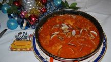 Almejas a la marinera con langostinos y cocochas de merluza