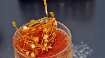Lubina a la sal,vinagreta fresas y gelatina de lima, naranja y menta