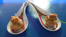 Arroz rojo con carabineros