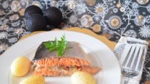 Lomo de rape con ravioli de hongos y espinacas con guisantitos de hondarribia con datil