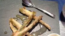 Esparragos en tempura con salsa de cítricos y crema de idiazabal