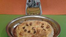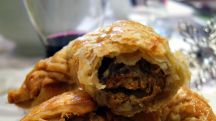 Bollo preñado de ternera asada con setas y patata en 2 texturas.