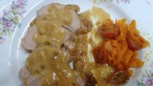 Solomillo de cerdo con sopa de cebolla