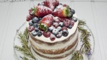 Tarta rústica con coulis de frutos rojos