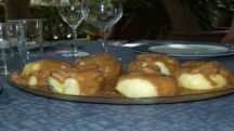 Patatas rellenas de mollejas de pato con foie en salsa de oporto