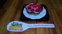 Helado de pera asada, miel, cardamomo y salsa de chocolate