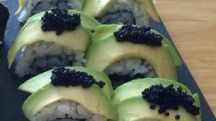Uramaki de aguacate relleno de salmón y queso philadelphia