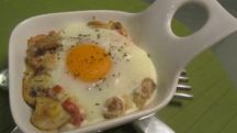 Cazuela de champiñones, bacon y huevo