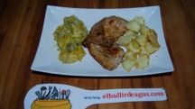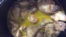 Pollo con cebolla y manzana en salsa de palo cortado