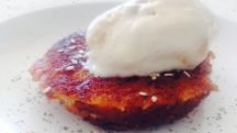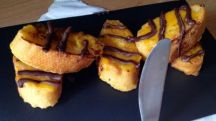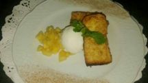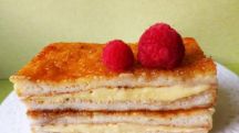 Sandwich de torrijas con crema de pistacho y frambuesas