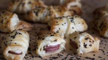Hojaldritos de lukanka y queso de cabra