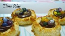 Nidos de coco y leche condensada rellenos de crema de avellanas