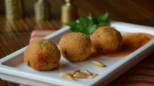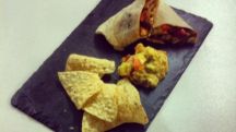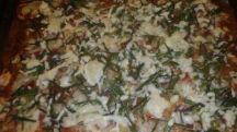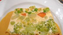 Pastel crujiente extra fino de calçots, espárragos de bosque y jamón ibérico