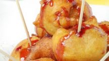 Buñuelos de plátano y salsa de frambuesas