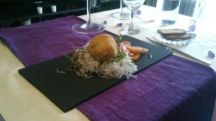 Merluza con crema de yogurt y manzana