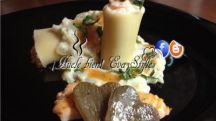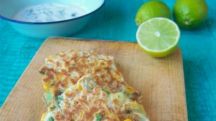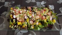 Ensalada de mango, queso feta, y aguacate con zumo de lima