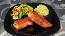 Saltimboca de salmón con patatas gremolata