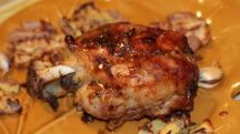 Muslos de pollo rellenos de carne, bacon y queso de cabra