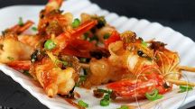 Gambas con caramelo de miel y jengibre
