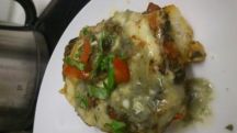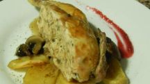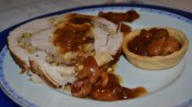 Pechugas de gran pavo de navidad rellenas con salsa de uvas y litchis