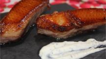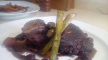 Solomillo iberico al vino tinto de rioja con salsa de arandanos, chips de boniato y esparragos trigueros