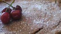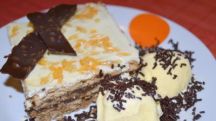 Tarta dos chocolates con crujiente de mandarina y helado de vainilla