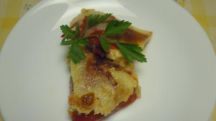 Lasaña de carne con mechamel de curri