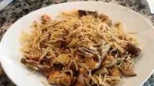 Fideos con setas y gambas