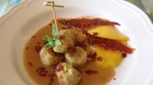 Albóndigas de pollo y manzana en salsa macadamia