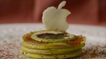 Milhojas de manzana caramelizada y foie micuit con pedro ximénez y chocolate amargo