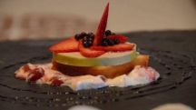 Capricho de foie y yoghourt con fresas y caviar de chocolate