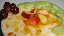 Dulce de melón, melocotón y yogur de mango