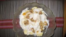 Macedonia de frutas con yogur griego y nueces