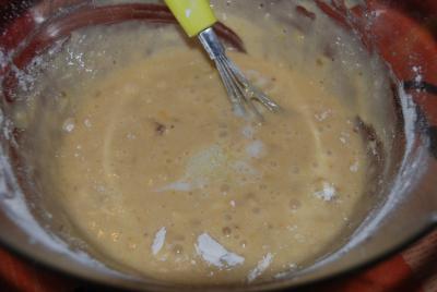 En otro bol, mezclamos el aceite con el azúcar y cuando la mezcla esté bien incorporada, vamos añadiendo los huevos de uno en uno. Añadimos la mitad de la harina y batimos hasta que se incorpore. Después añadimos la mitad de la leche, los licores, el resto de la harina y por último el resto de la leche.